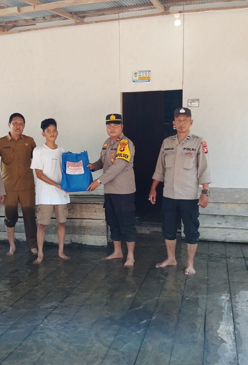 Burusergap.Co.Id Kalimantan Tengah – Iptu Firman Amir, SH, MH didampingi ROBY WAHYUDI, S.E.,M.M selaku Kasi Pembangunan, mewakili tim Muspika Kecamatan Danau Seluluk, Kabupaten Seruyan gelar kegiatan pemberian bansos kepada 8 kepala keluarga warga Desa Tanjung Pari yang terkena dampak banjir.