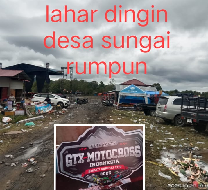 kerinci – Burusergap.co.id. Euforia Kejuaraan Grass track Bupati Kerinci Cup 2025 yang digelar pada 18–19 Oktober 2025 di Sirkuit Lahar Dingin Sungai Rumpun masih terasa. Namun sayangnya, di balik kemeriahan ajang bergengsi tersebut, meninggalkan pemandangan yang kurang sedap tumpukan sampah berserakan di area sirkuit, Selasa (21/10/2025).